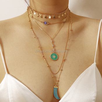 Venta caliente collar de oro encanto collar multi capa collar de la joyería